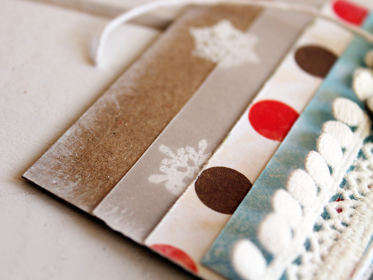 А этих милых снеговичков я вырезала из карточек для вырезания, прилагавшихся к набору бумаги, их я посадила на картон, опять же для объема.