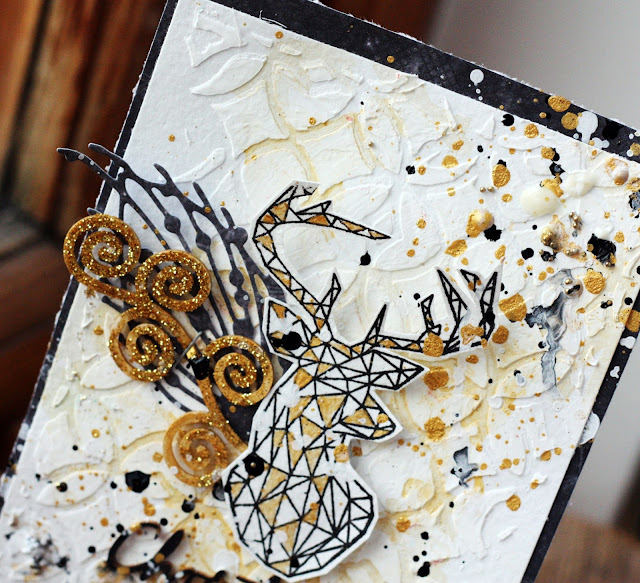 Открытка усыпана золотым глиттером, акрилом и конечно главный новогодний красавчик _Олень :)