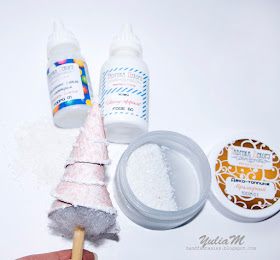 А дальше мой самый любимый этап - создание заснеженности. Изморозь делаем грунтом с помощью сухой кисточки, а снег - мраморный топпинг, нанесенный на прозрачный медиум.